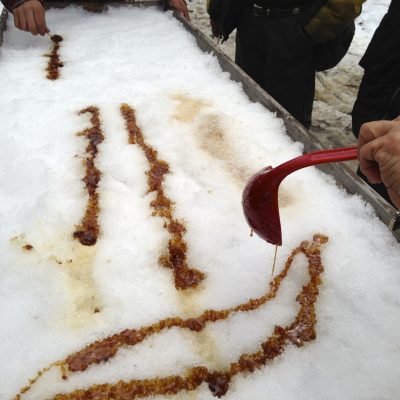 Le sirop d’érable est un délice printanier connu des allochtones depuis l’époque de Jacques Cartier, qui entend alors parler d’un suc délicat et de bon