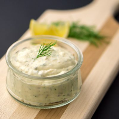 TREMPETTE AU YOGOURT À L’ÉRABLE BORÉALAIT à la moutarde forte, aneth et pomme verte